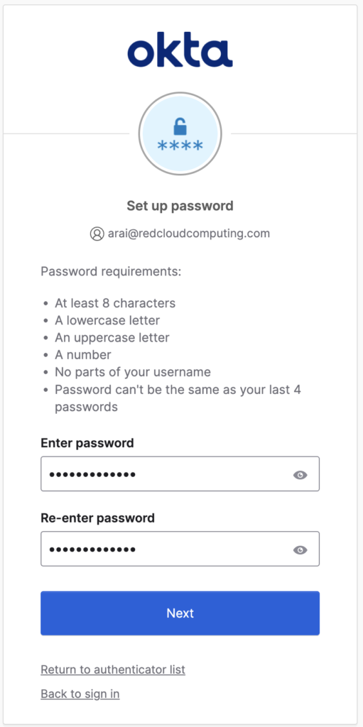 Step 4: Wait for the confirmation email, then activate your account by creating a new password. You can choose to set up MFA later.