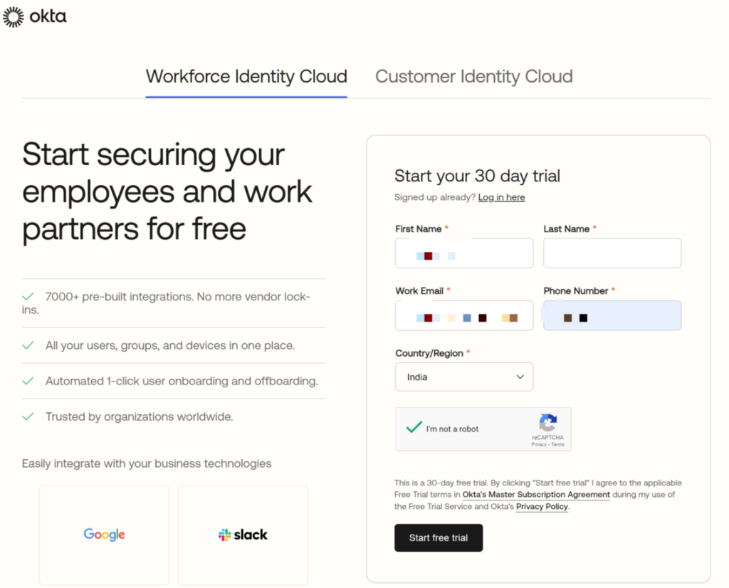 Step 1: Sign up for an Okta account (it’s not free, but a 30-day trial is available).