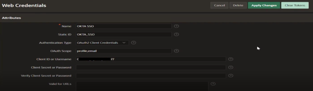 Step 12: After that on web credential page give Name, Static ID, Authentication Type, Oauth Scope ,Client ID and Client Secret