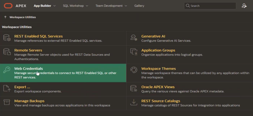 Step 11: Now go to Work Space Utilities > Web Credentials and then Create Web Credentials as below screenshot.