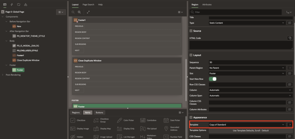 🧩 How to Create a Footer in Oracle APEX – Step by Step Guide