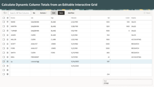 - π How to Calculate Dynamic Column Totals from an Editable Interactive Grid in Oracle APEX1. Introduction Oracle APEX Interactive Grid is a powerful component that allows users to view and edit data directly within the page. However, in many real-world applications, users expect instant feedback when they modify numeric valuesβsuch as automatically updating totals or summaries on the same page. By default, Interactive Grids do not provide a built-in way to dynamically calculate and display column totals outside the grid. In this blog, we will explore how…