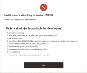 - Invalid Numeric Value in Oracle APEX? The Hidden Comma Problem in URL Parameters ExplainedA Real-World Lesson on Passing Page Items Safely in Oracle APEX π The Issue Faced in Production Recently, I have faced a critical production error while navigating from a report page (Page 29) to an Edit page (Page 31). Users were clicking the Edit icon, and suddenly this error appeared: Invalid numeric value King for column EMPNO ORA-06502: PL/SQL numeric or value error: character to number conversion error It was working…
