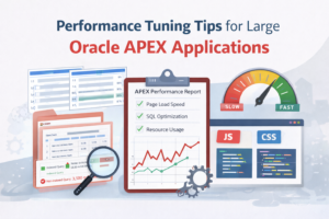 - Performance Tuning Tips for Large Oracle APEX ApplicationsWhen Oracle APEX applications growβmore users, more data, more pagesβperformance becomes critical. A slow APEX app frustrates users and gives the impression of poor design, even when functionality is correct. This step-by-step guide covers practical, real-world performance tuning techniques you can apply to large Oracle APEX applications used in production. Step 1: Understand Where the Time Is Going Before tuning anything, you must identify the bottleneck. What to Check Tools to…